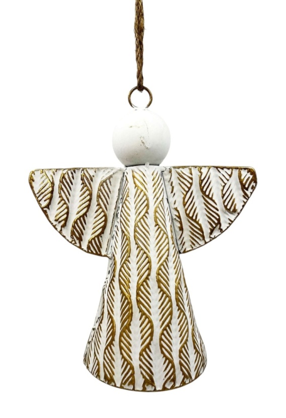 Anioł metalowy 33,5cm dzwon biało-złoty przecierany (MK0481)