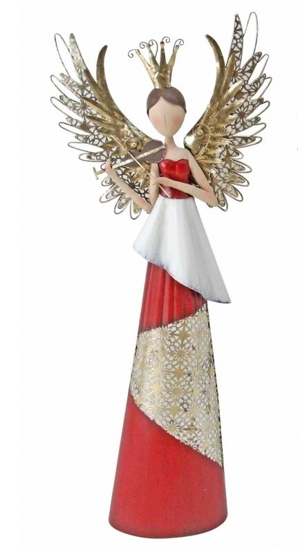 Anioł metalowy został wykonany z dbałością o najmniejsze detale. Połączenie złota i czerwieni nadaje mu wyjątkowego blasku i sprawia, że prezentuje się niezwykle efektownie, przyciągając wzrok w każdym pomieszczeniu.
