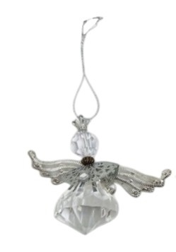 Aniołek akryl 8cm srebrne metalowe skrzydełka (TY0399)-20%