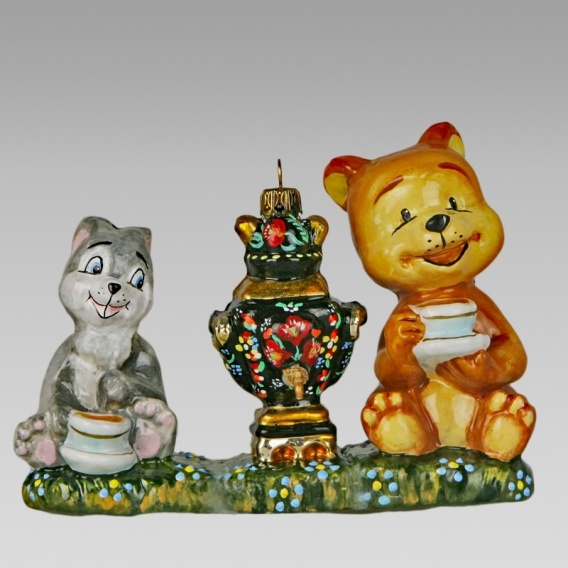 Bombka Komozja: Miś i zając z samowarem (4927K00)