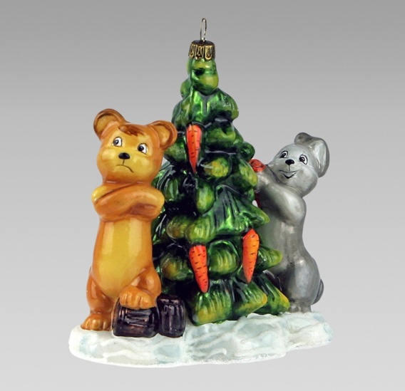 Bombka Komozja: Miś z zającem i choinka z marchewek (3665K00)