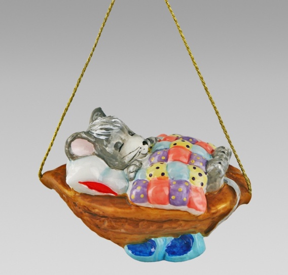Bombka Komozja: Myszka śpiąca w łupinie orzecha włoskiego (4871S00)