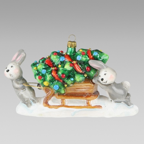 Bombka Komozja: Zajączki ciągnące sanie z choinką (4705K00)