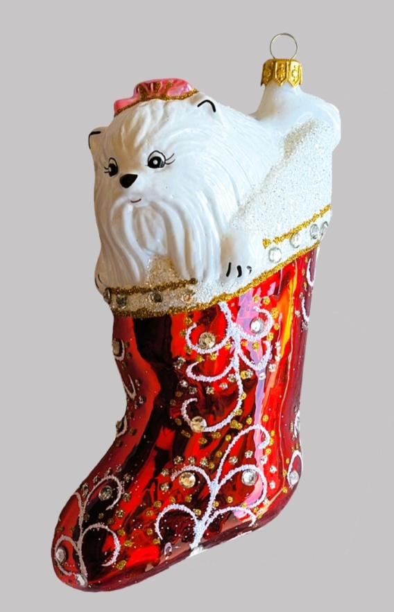 Bombka formowa: Pies w skarpecie czerwony błysk (61) SEW