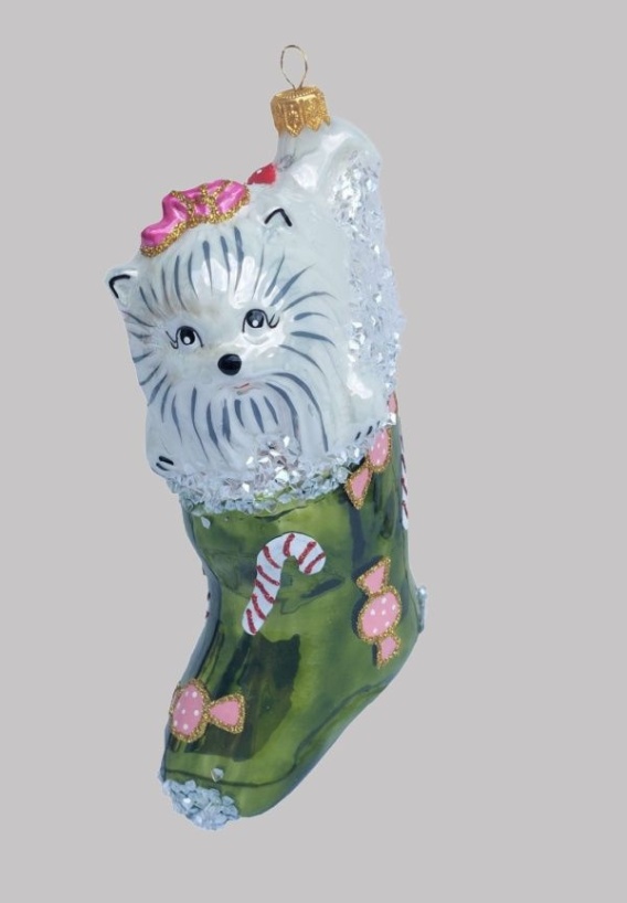 Bombka wykonana jest ze szkła, ręcznie malowana i zdobiona