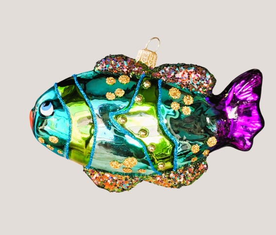 Bombka wykonana jest ze szkła, ręcznie malowana i zdobiona