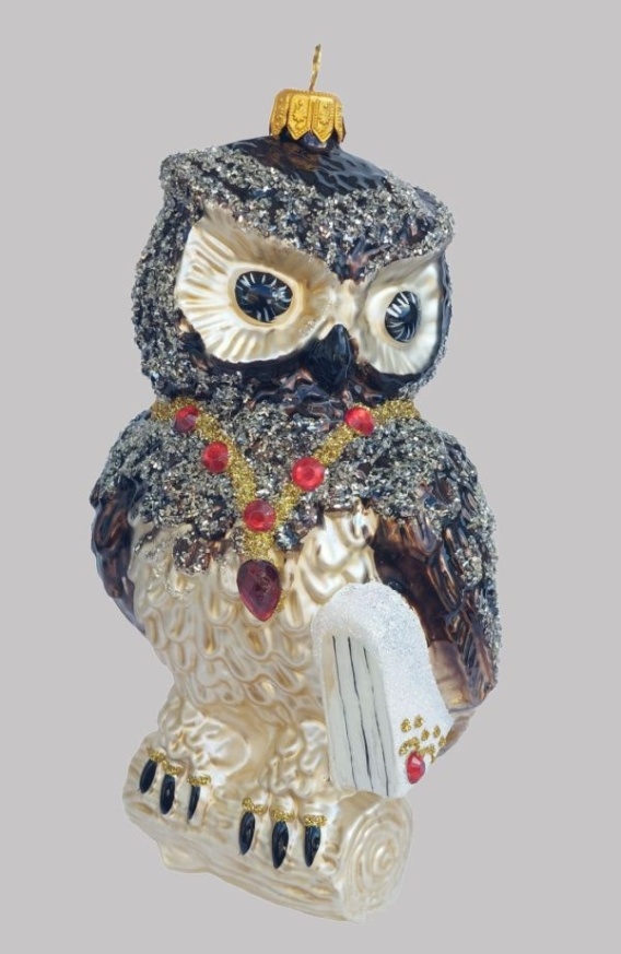 Bombka formowa: Sowa brązowa z cyrkoniami (188) SE