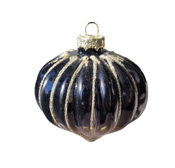 Bombka karbowana 8cm czarna ze złotym brokatem