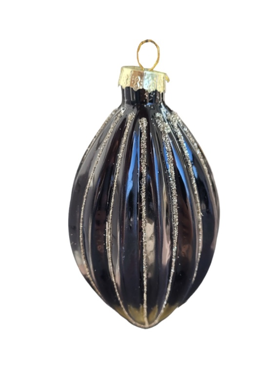 Bombka karbowana sopelek czarny ze złotym brokatem