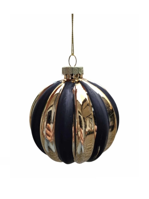 Bombka szklana złoto/czarna karbowana
