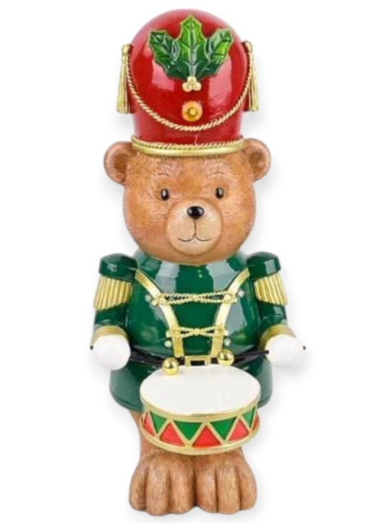 LED Drummer Bear 37 cm - Christmas Decoration Made of Polyresin (TG79242)