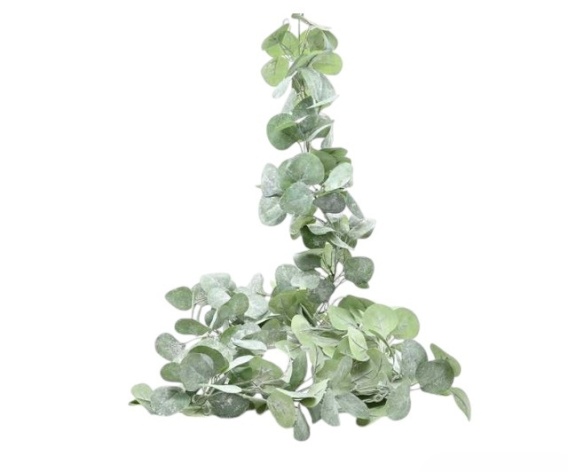 Girlanda dł.180cm eukaliptus zielone liście srebrny brokat (CV32842)