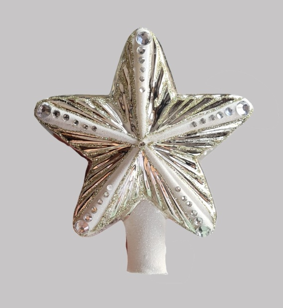 Gwiazda szklana dekorowana srebrna z kamieniami na czub choinki (SE)