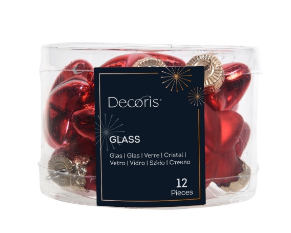 Gwiazdki szklane opakowanie 12szt czerwone błysk/mat (010188) 4x2x4,5cm (tuba)