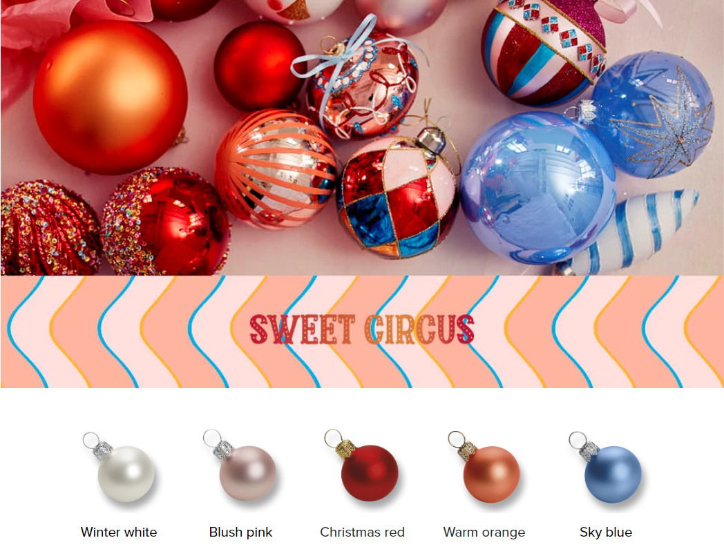 Gwiazdy Areny to pełna energii, współczesna kolekcja, która tętni radością i kolorem. Jej sercem są barwne akcenty, wesołe klauny i słodkie smakołyki – niczym w prawdziwym cyrku. Paleta kolorystyczna łączy zimową biel, subtelny róż, klasyczną czerwień, ciepłą pomarańczę i błękit, tworząc różnorodny i niezwykle żywiołowy świąteczny klimat.