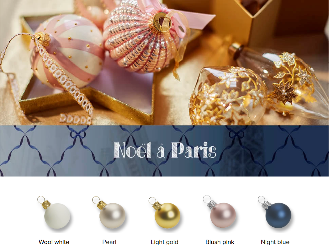 W kolekcji znajdziesz bogato zdobione bombki oraz oryginalne szpice choinkowe. Delikatne anioły i złote ozdoby dodają całości elegancji oraz odrobiny wielkomiejskiego splendoru. Kolekcja Paryski Sen to kwintesencja modnych, świątecznych zakupów w sercu Paryża – pełna uroku, stylu i blasku.