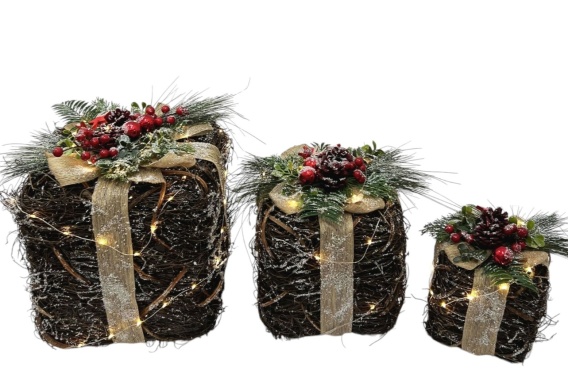 Kpl. 3 prezenty plecione świąteczna dekoracja oświetlenie LED (MK0817)