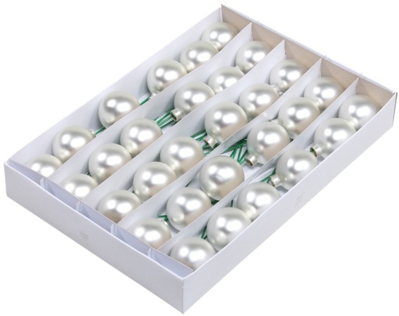 Kpl 30 bombek szklanych 50mm na druciku srebrny mat perła (100342)-20%