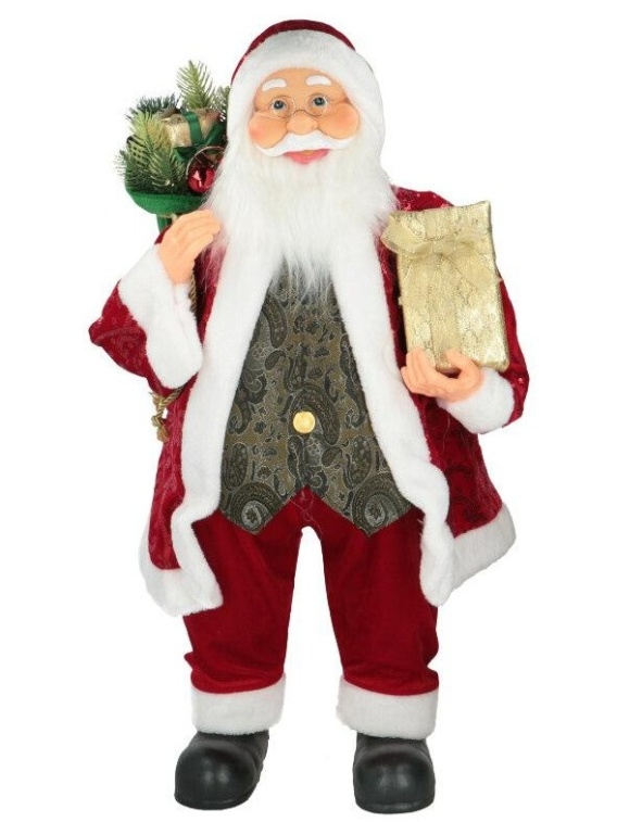 Santa Claus 80 cm Burgundy with Sequins and a Present (TM36M209-09)