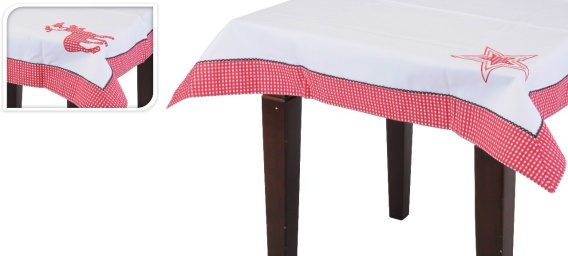 Obrus 100*100 czerwona kratka + koronka 2wzory (441709)