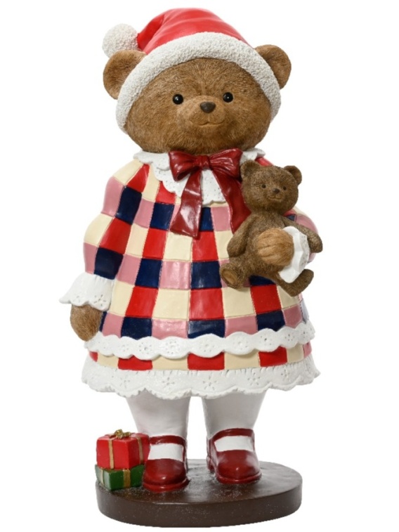 Pani Misiowa XL stojąca z misiem to wyjątkowa dekoracja, która doda uroku i ciepła w okresie świątecznym. Wykonana z poliresingu, ta elegancka postać o wysokości 57,5 cm, trzymająca małego misia, stanowi doskonałą ozdobę na Boże Narodzenie. Jest idealnym wyborem zarówno do dekoracji wnętrz, jak i jako oryginalny prezent, wprowadzając radosną i serdeczną atmosferę do każdego pomieszczenia.