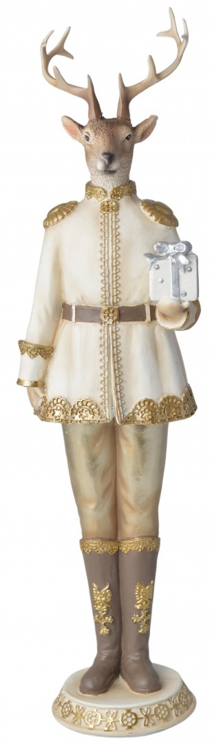 Renifer ceramiczny z prezentem ecru surdut