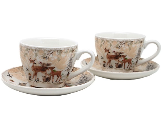 Kpl. 2-ch filiżanek z talerzykami ceramicznymi "leśne zwierzęta" (PG-19680) w ozdobnym pudełku