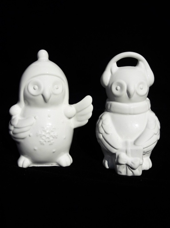 Sowa ceramiczna biała szkliwiona skarbonka 15*12*8cm (4759619)