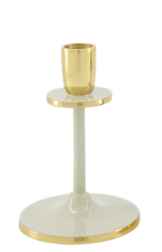 Świecznik metal na 1 świeczkę beżowy z złotymi detalami