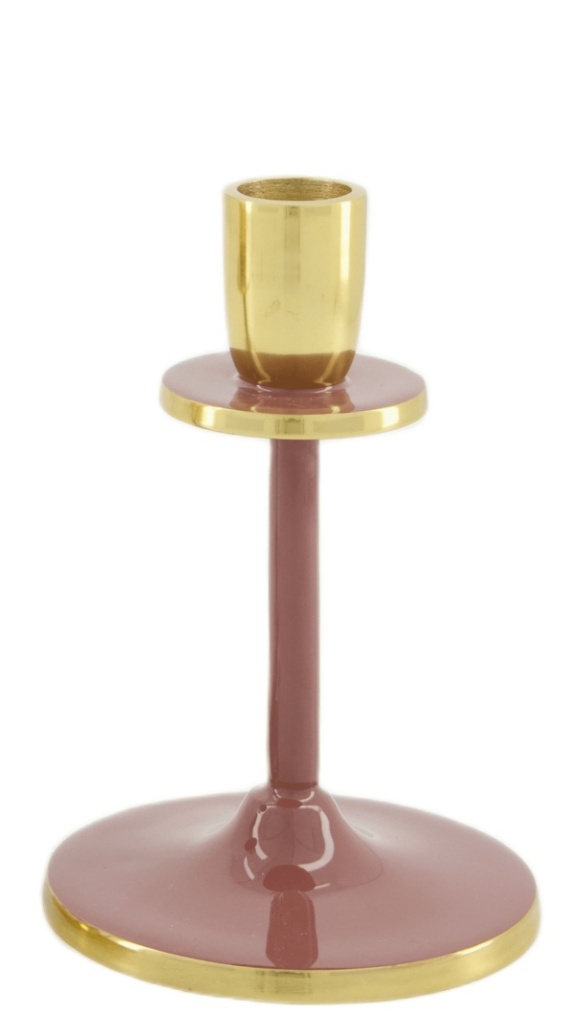 Świecznik metal na 1 świeczkę ciemny róż z złotymi detalami