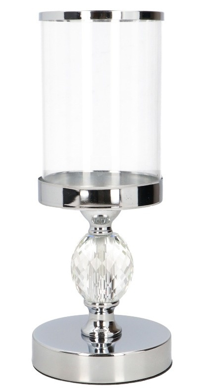 Świecznik metalowy srebrny z kulą akrylową i szkłem (NC9129-18)-40%