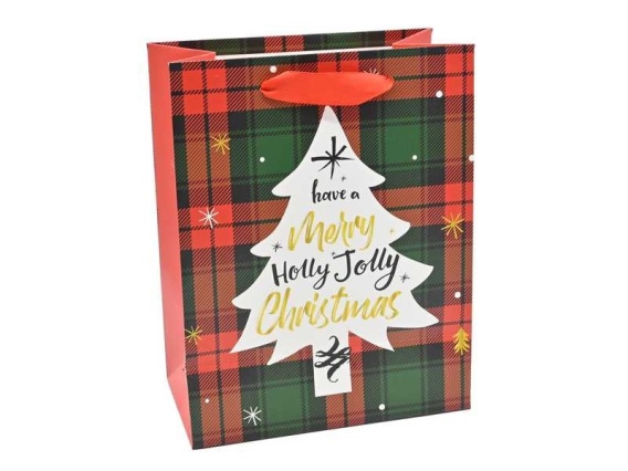 Torebka na prezenty średnia krata z choinką (TG69445-2)