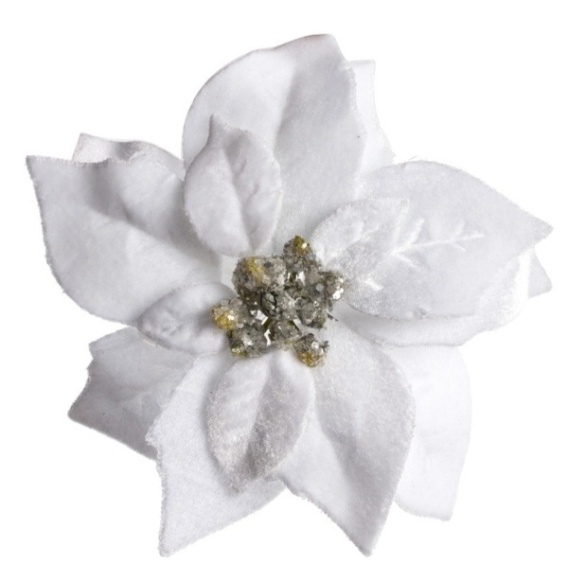 Poinsecja welurowa biała fi 17 cm na klipsie (WYR03808)