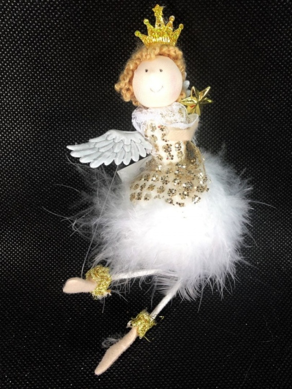 Zawieszka aniołek z białymi piórkami lecący 12*14*6cm (ZX0188)-20%
