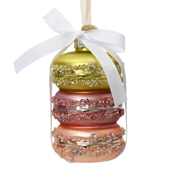 Zawieszka bombka szklana 3 makaroniki przewiązane wstążką (070063)
