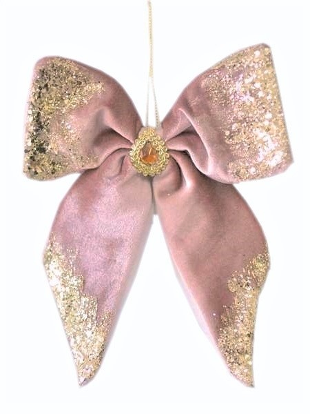 Zawieszka kokarda róż welur z kamieniem i brokatem