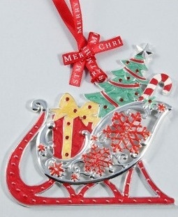 Zawieszka metalowa sanie z choinką ozdobne pudełko (473-3349)